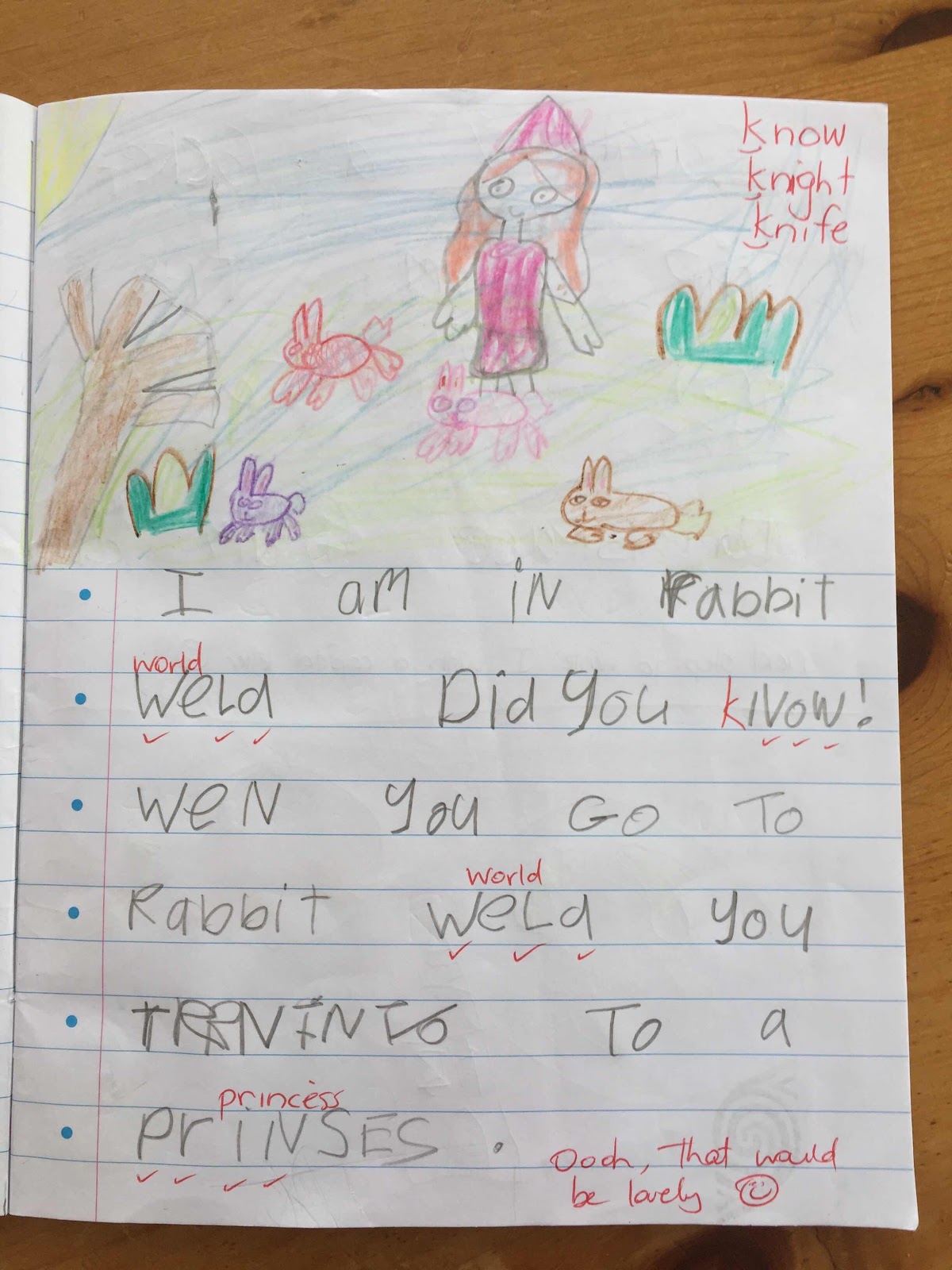 Just a few sample stories from her exercise book that came back from school today.