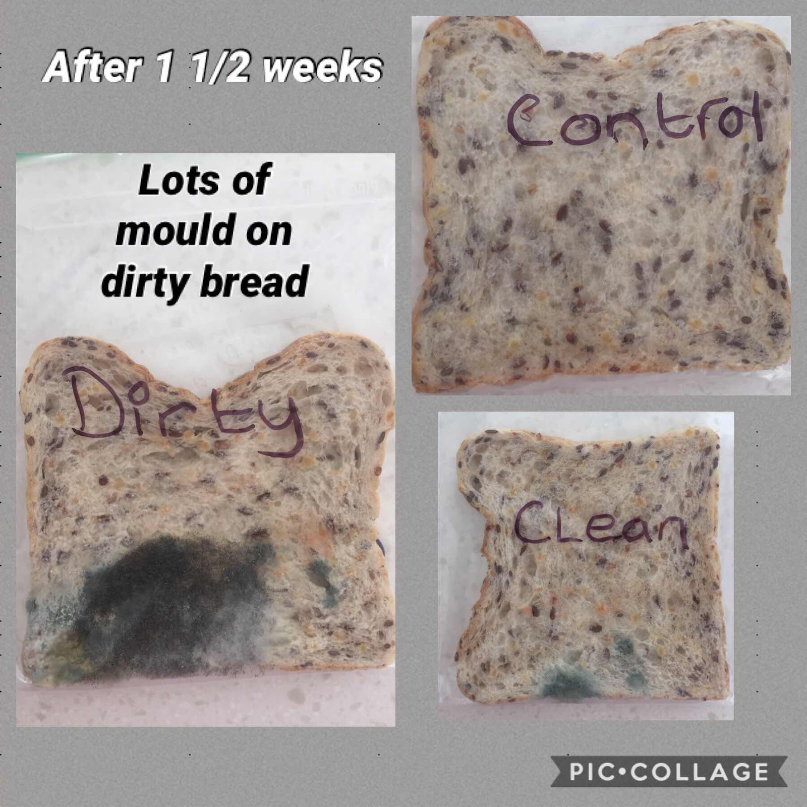 Conclusive results - look how Mould on the dirty bread!