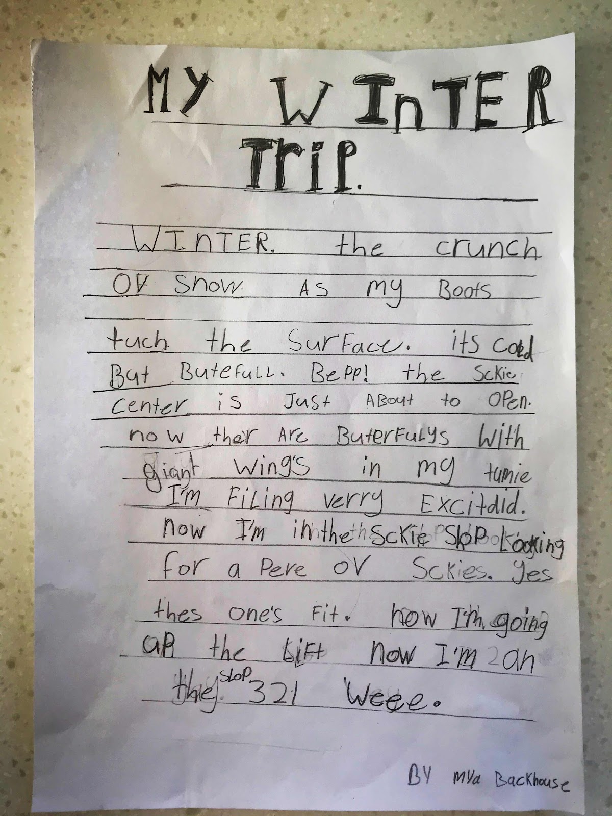 Mya’s school work for today.