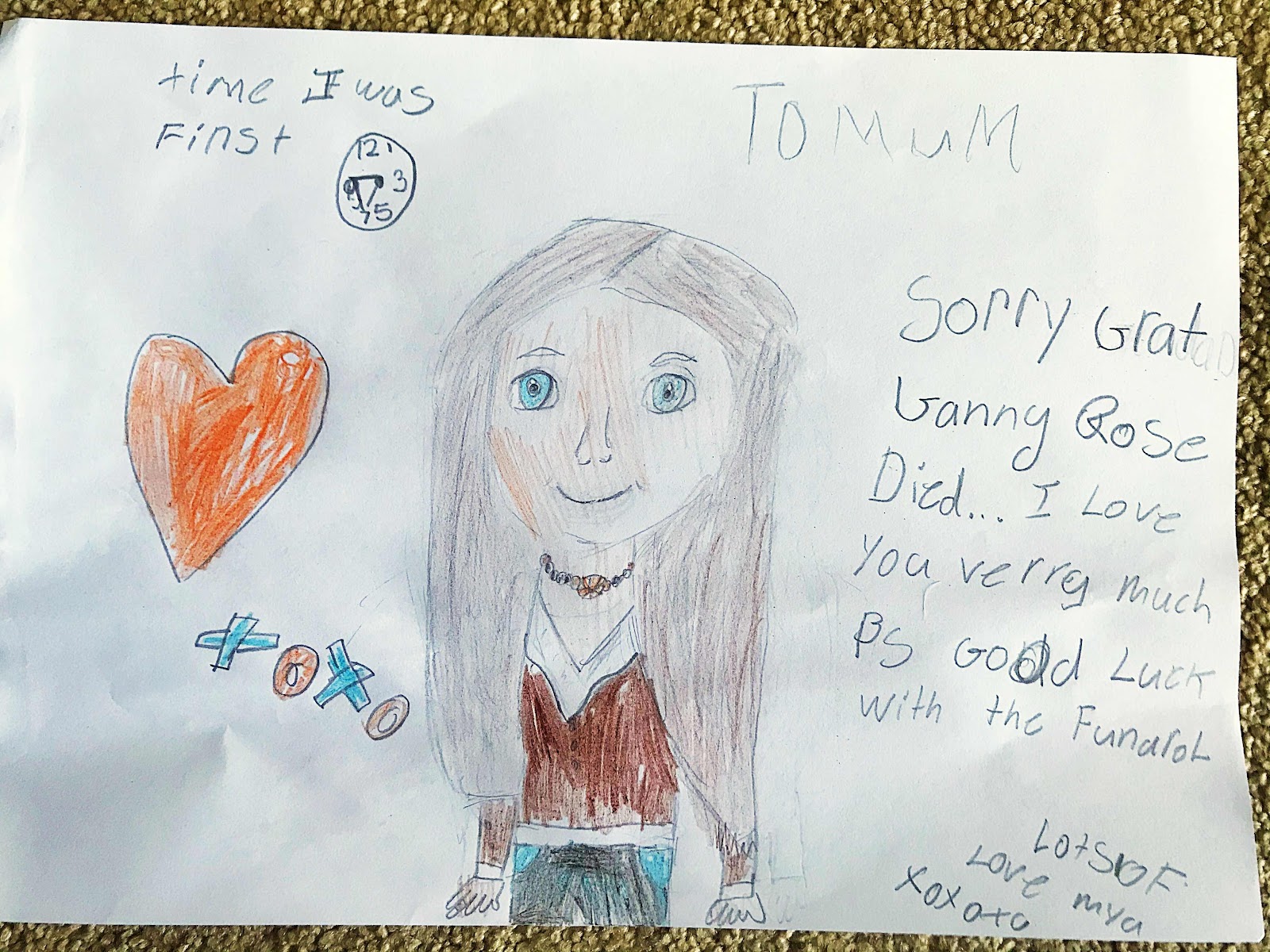 I found a note that Mya wrote for me last night, knowing that I was getting up for the funeral at 1.00 am.
