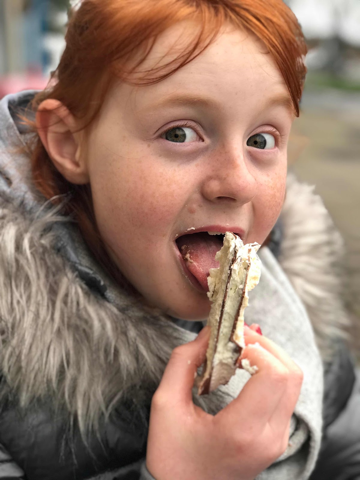After a chilly and windy walk we stopped at Heidi’s patisserie for a treat.