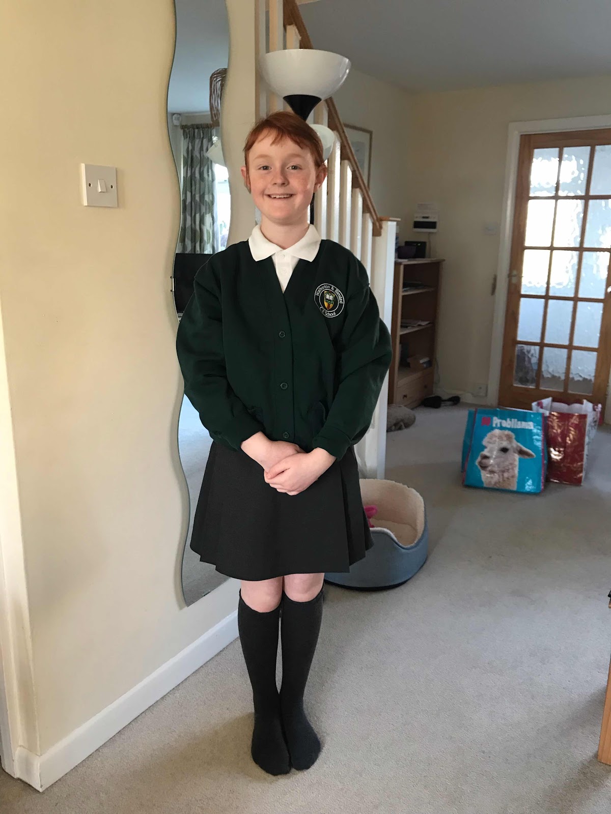 Straight out to get some uniform including the school cardigan and sweatshirt.