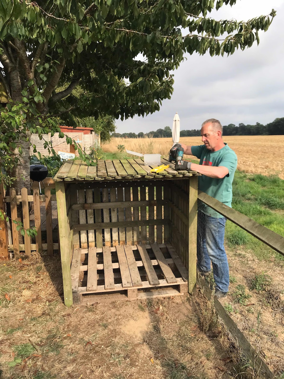 John cleverly re-purposed the wood from our old picket fence into a new wood shed.