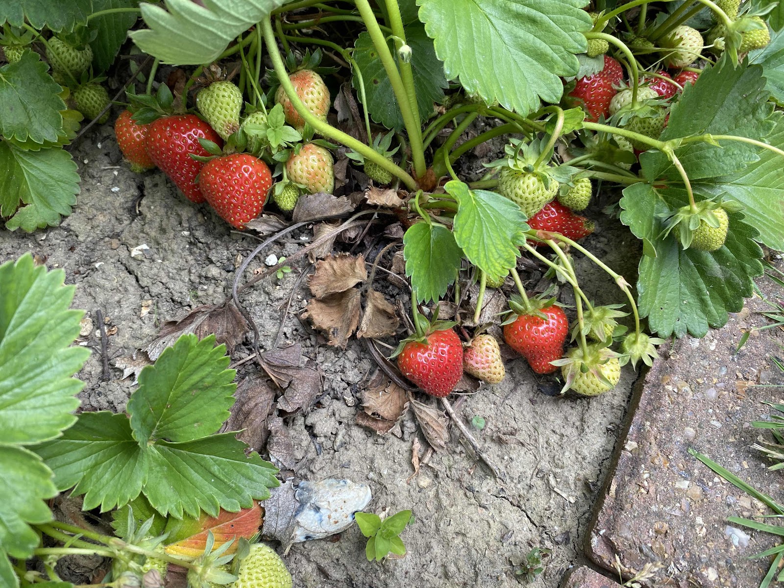 Harvesting some bits from the garden today. Had to pick the strawberries as the wood lice were getting a taste for them.